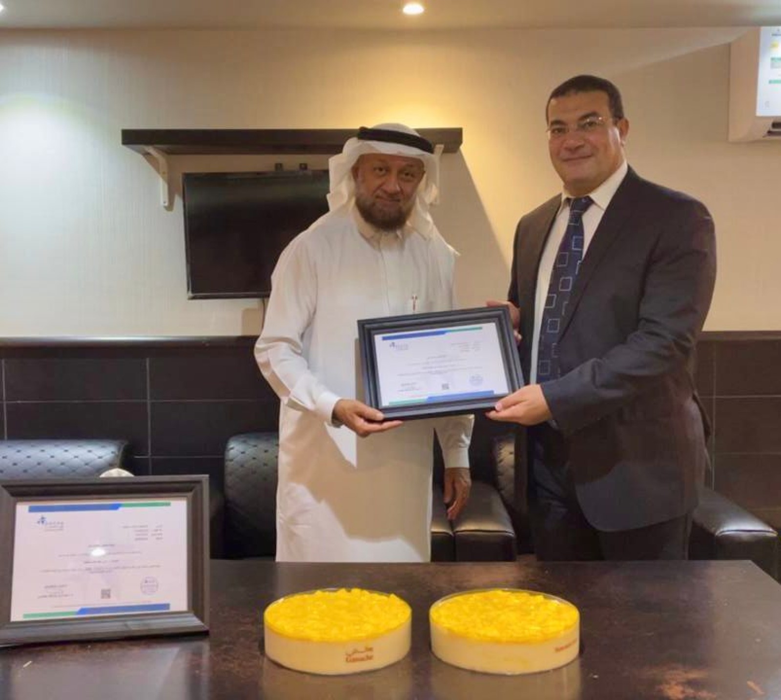 تكريم الشركة للحاصلين على شهادة "فاحص احتيال مالي" مؤخرا وهم سعادة الرئيس التنفيذي د. رامي الخضر وسعادة المستشار أحمد الشحات رئيس قسم القضايا والتصفيات